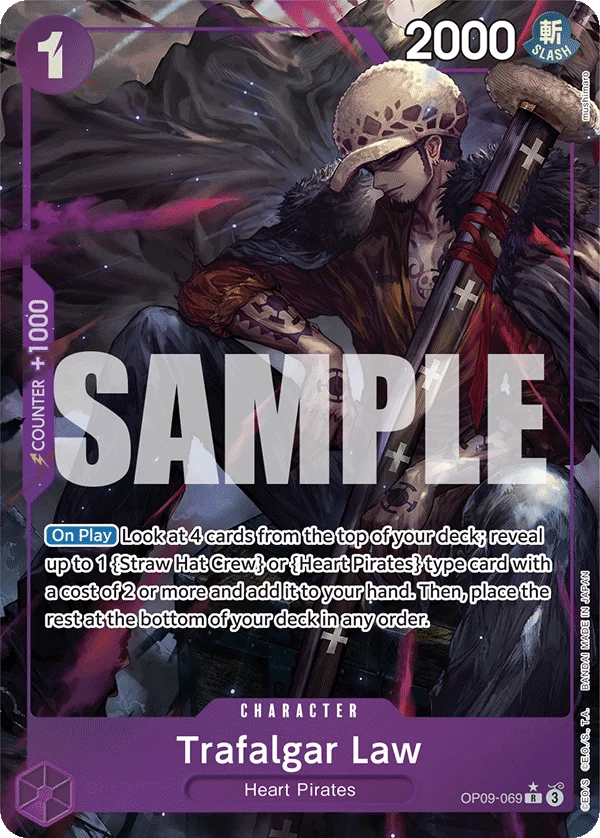 [On Play] Look at 4 cards from the top of your deck; reveal up to 1 "Straw Hat Crew" or "Heart Pirates" type card with a cost of 2 or more and add it to your hand. Then, place the rest at the bottom of your deck in any order.
