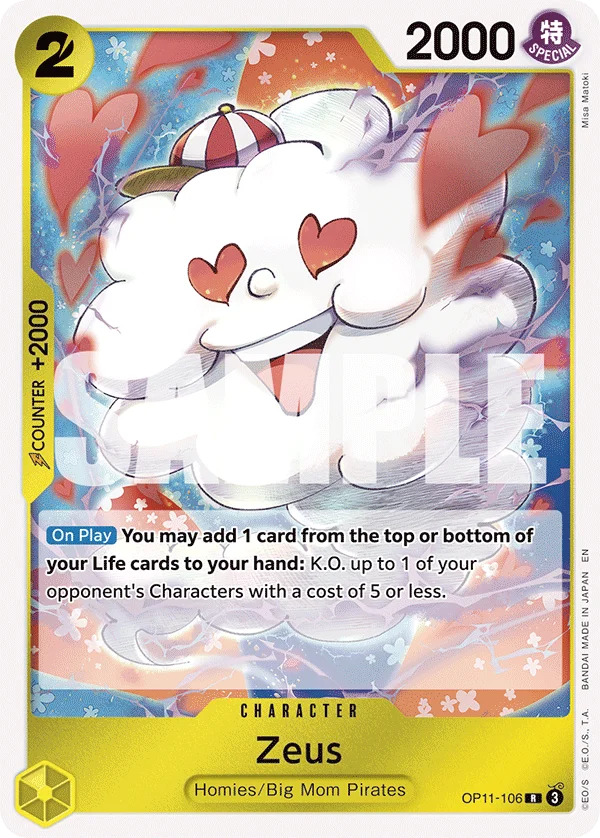 [On Play] You may add 1 card from the top or bottom of your Life cards to your hand: K.O. up to 1 of your opponent's Characters with a cost of 5 or less.