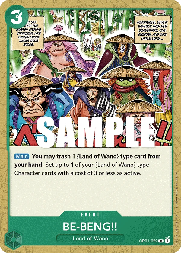 [Main] You may trash 1 "Land of Wano" type card from your hand: Set up to 1 of your "Land of Wano" type Character cards with a cost of 3 or less as active.