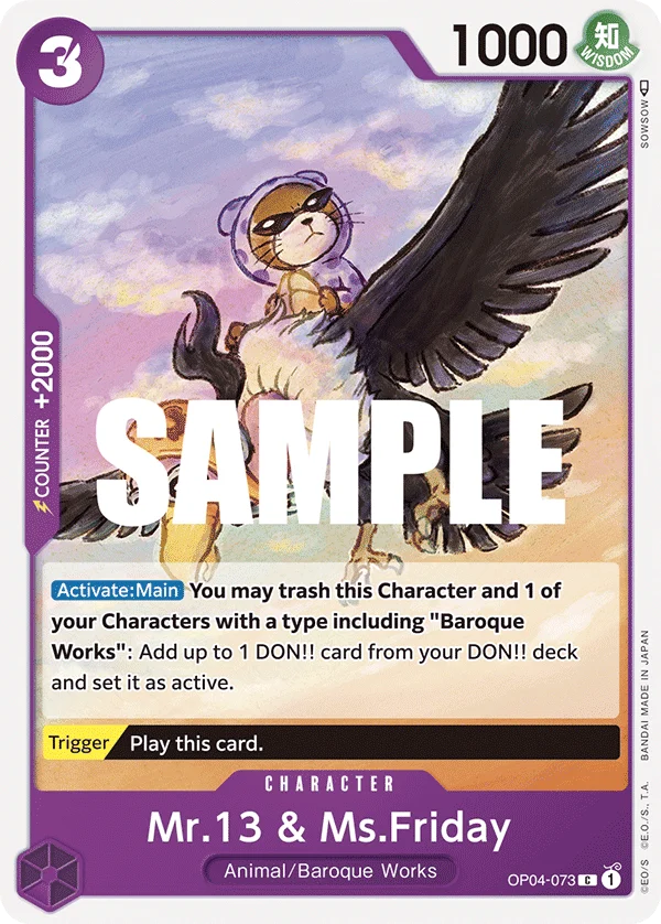 [Activate:Main] You may trash this Character and 1 of your Characters with a type including "Baroque Works": Add up to 1 DON!! card from your DON!! deck and set it as active.