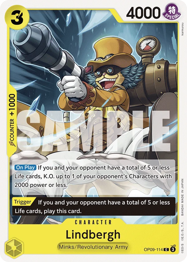 [On Play] If you and your opponent have a total of 5 or less Life cards, K.O. up to 1 of your opponent's Characters with 2000 power or less. [Trigger] If you and your opponent have a total of 5 or less Life cards, play this card.