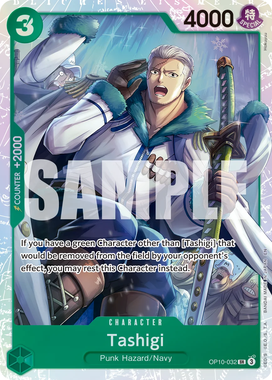 If you have a green Character other than [Tashigi] that would be removed from the field by your opponent's effect, you may rest this Character instead.